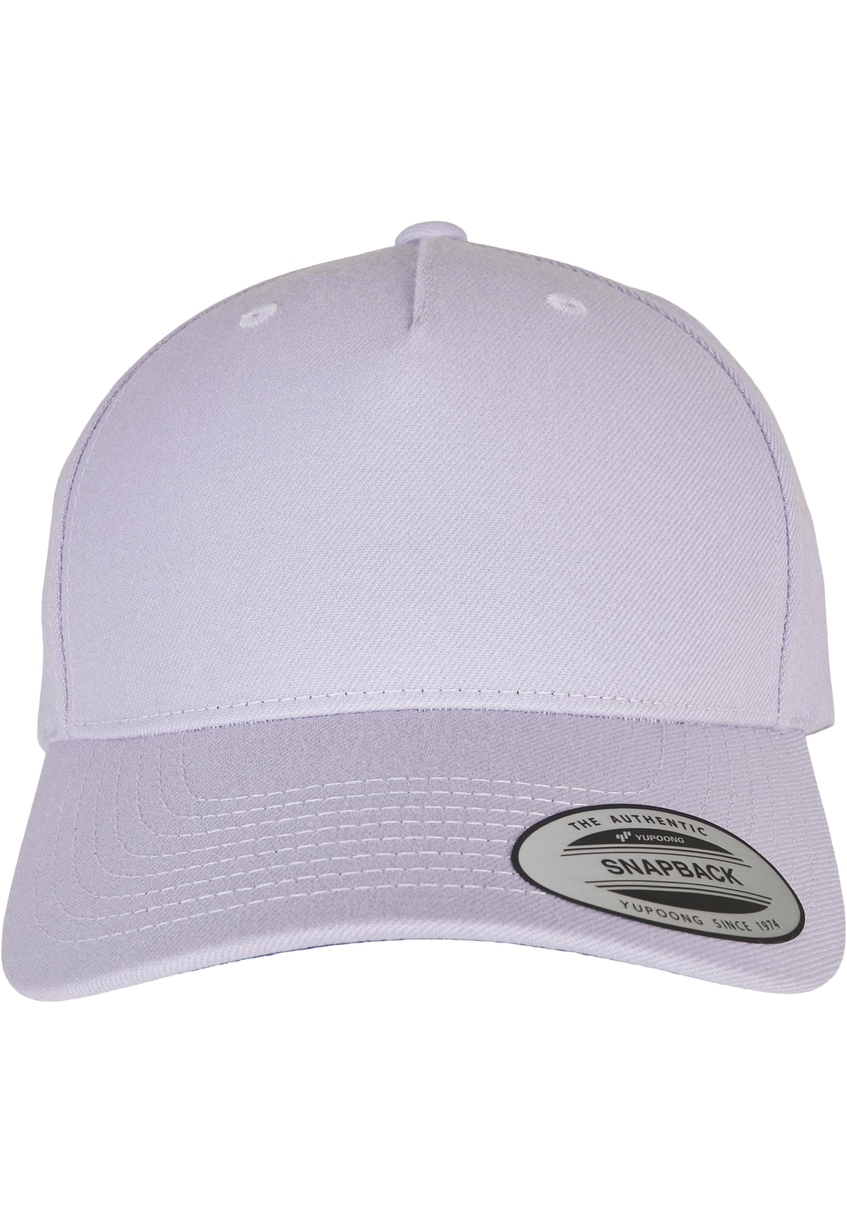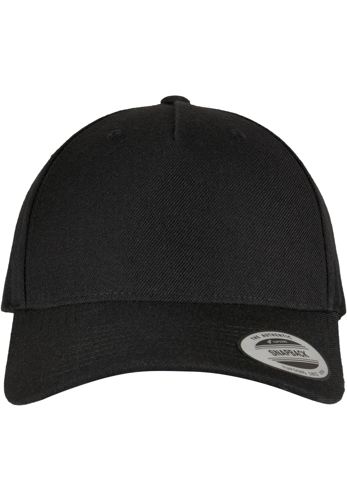 80% acrylique, 20% laine. Casquette 5 panneaux à visière incurvée et fermeture snapback. Panneau avant sans couture pour faciliter la personnalisation.